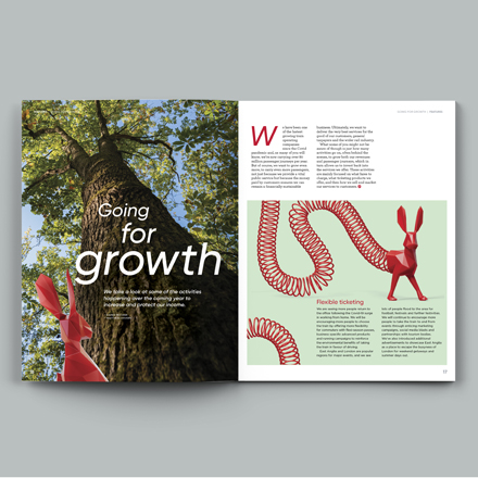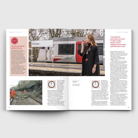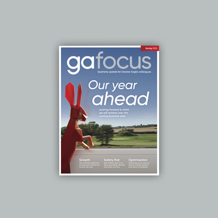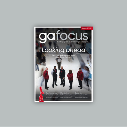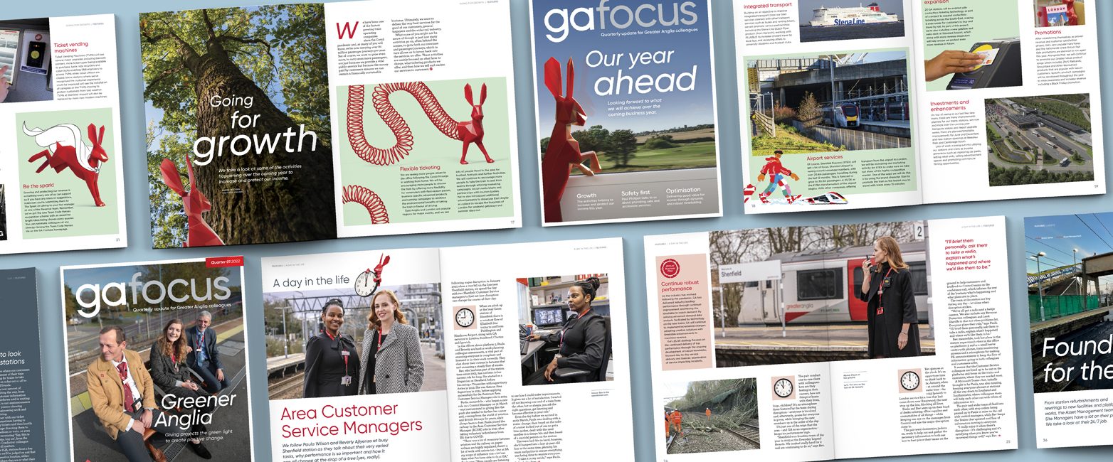 I design a quarterly, 50-page magazine ‘GA Focus’ that is sent to Greater Anglia's 3,000 emplyee's homes.