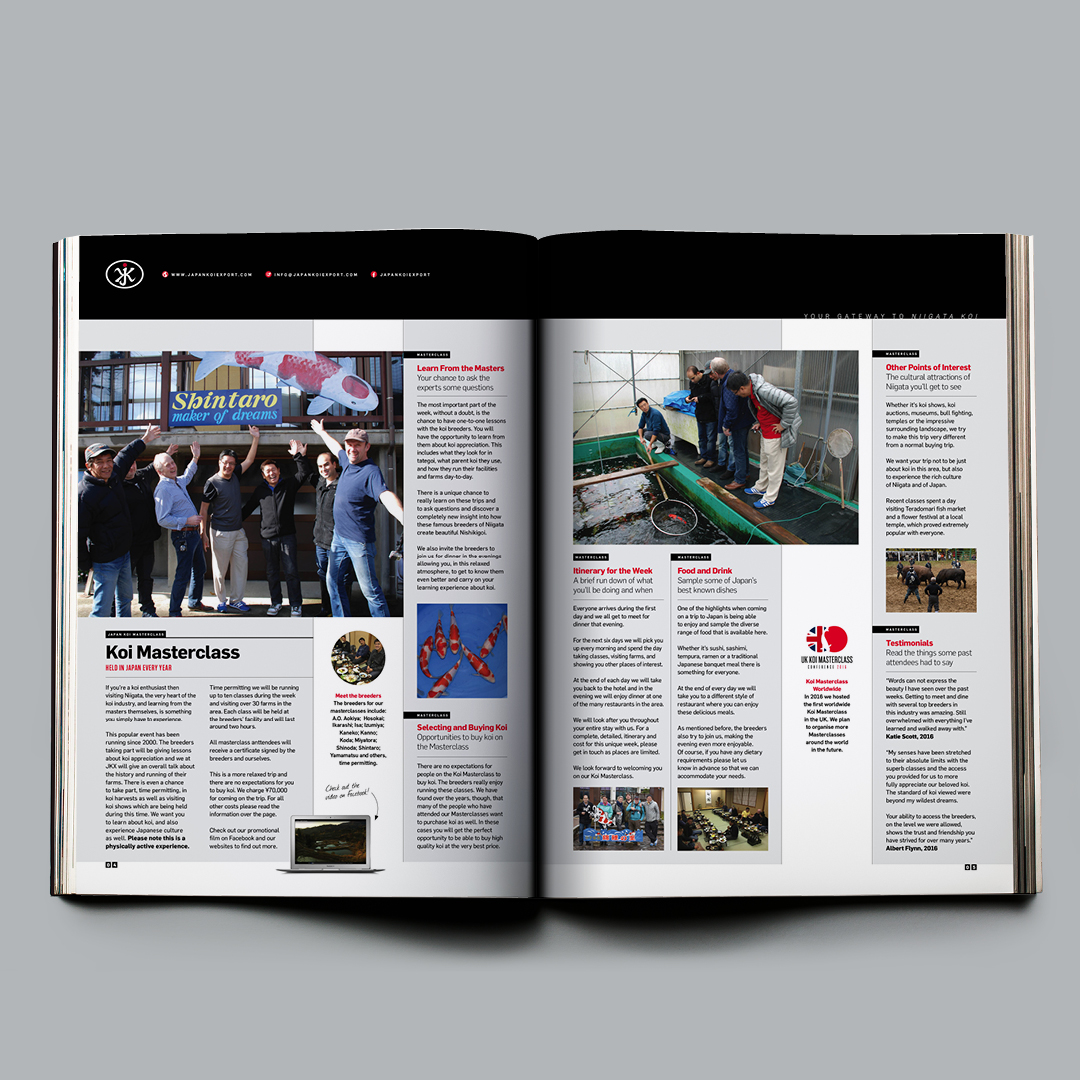 I've been working with Martin to publish a compilation book of articles he has published in various koi magazines over the past 20 years. The articles have been lovingly redesigned into a beautiful, long-read format. The style of the book is flexible, to allow unique variants on the design for each individual article, keeping it highly engaging while retaining a cohesive look.